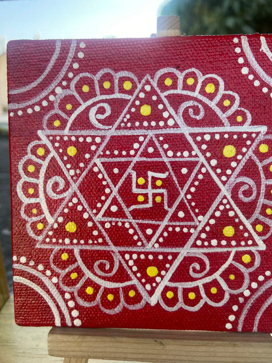 Shri Yantra Canvas – Hand-Painted Sacred Geometry (4x4")